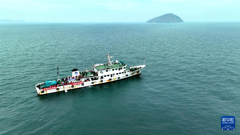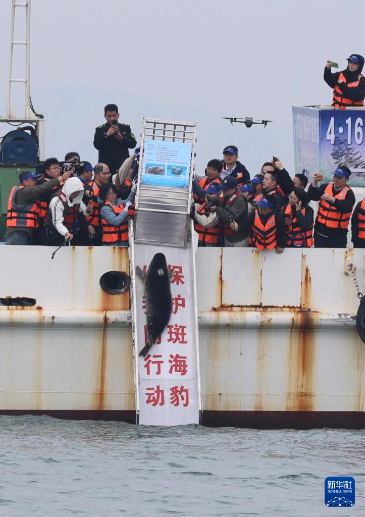 4月16日,工作人员将斑海豹放归大海。