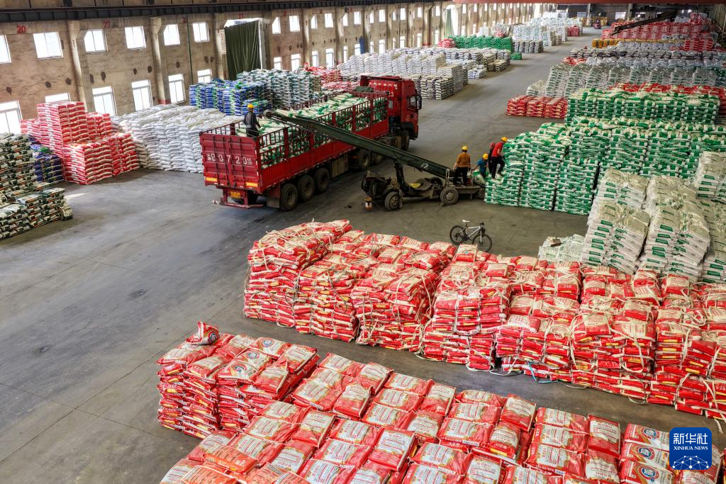 4月16日,工人在贵州省瓮安县一化肥生产企业转运化肥。