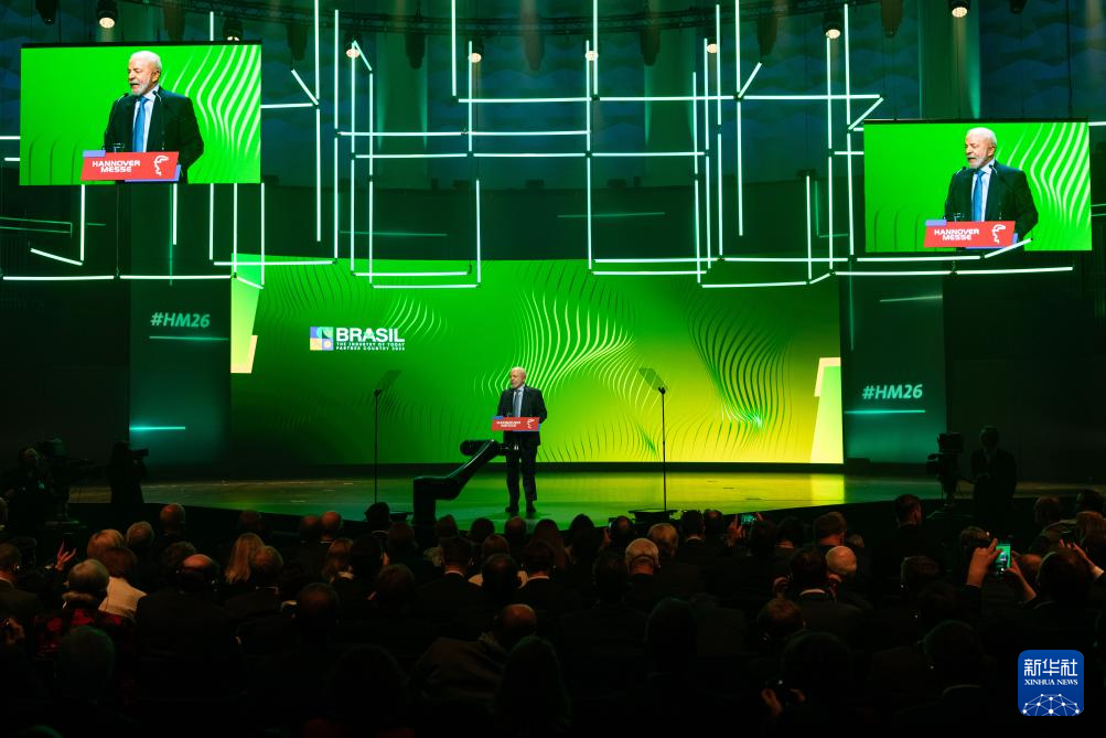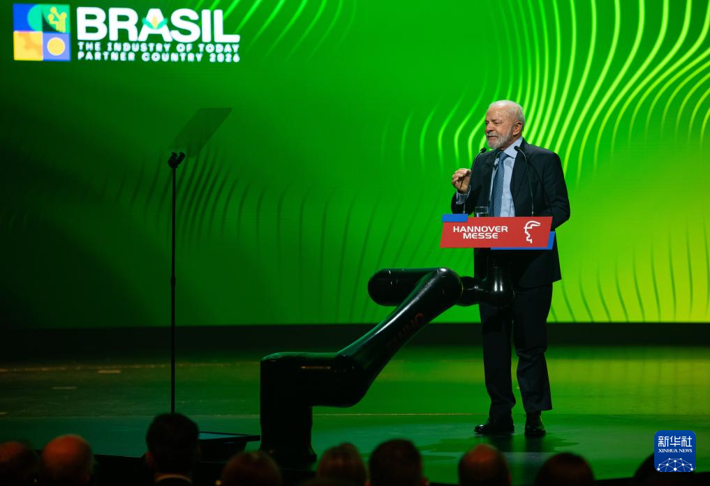 4月19日,主宾国巴西总统卢拉在德国汉诺威工业博览会开幕式上致辞。