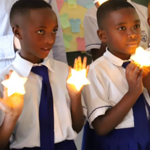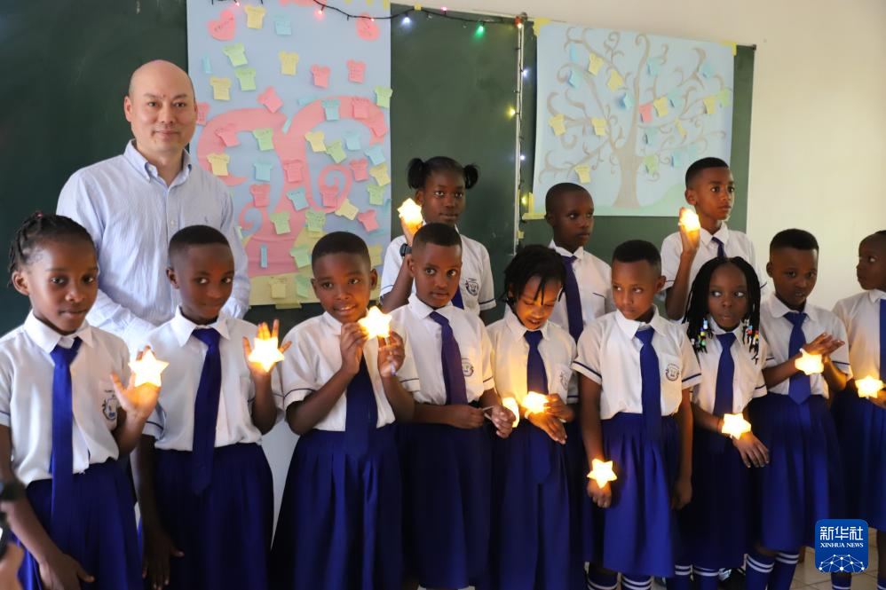 4月19日,在卢旺达首都基加利,当地学生在“国际中文日”文化交流活动上合影。