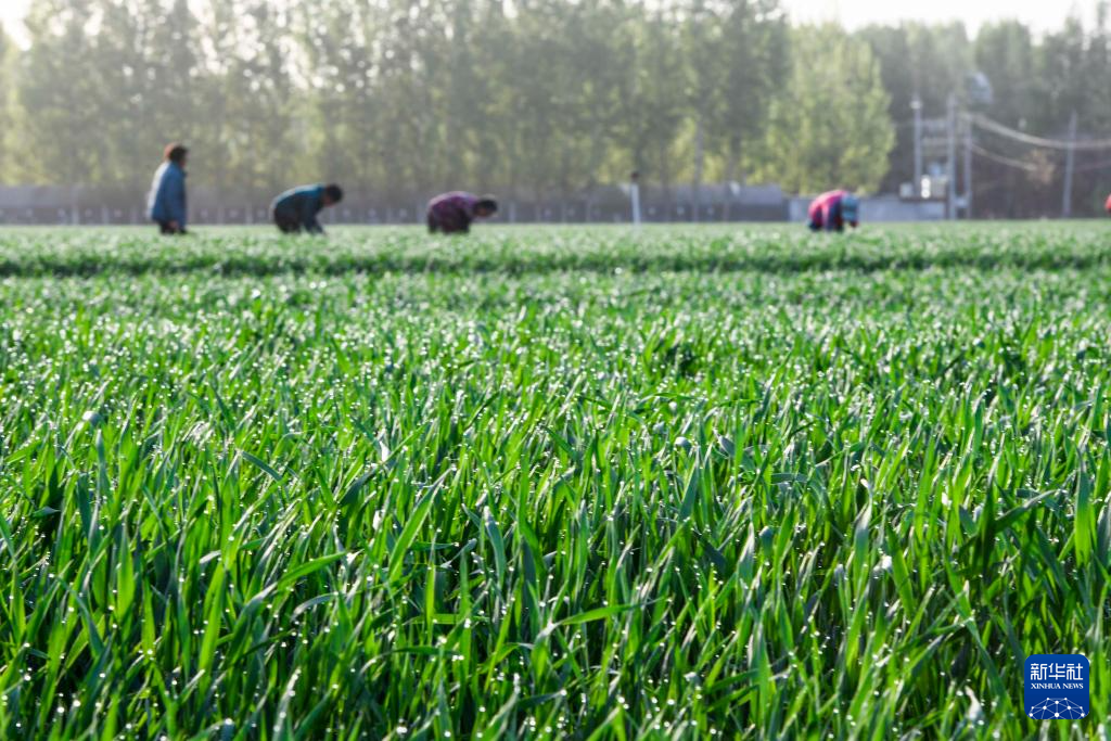 4月20日,在河南省安阳市内黄县马上乡,农民在麦田内锄草。