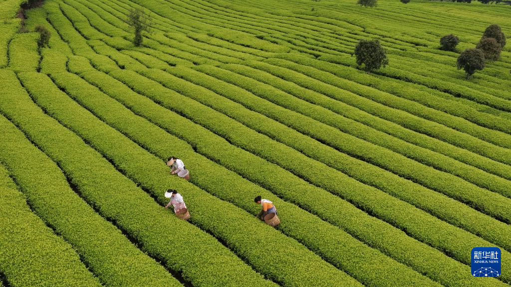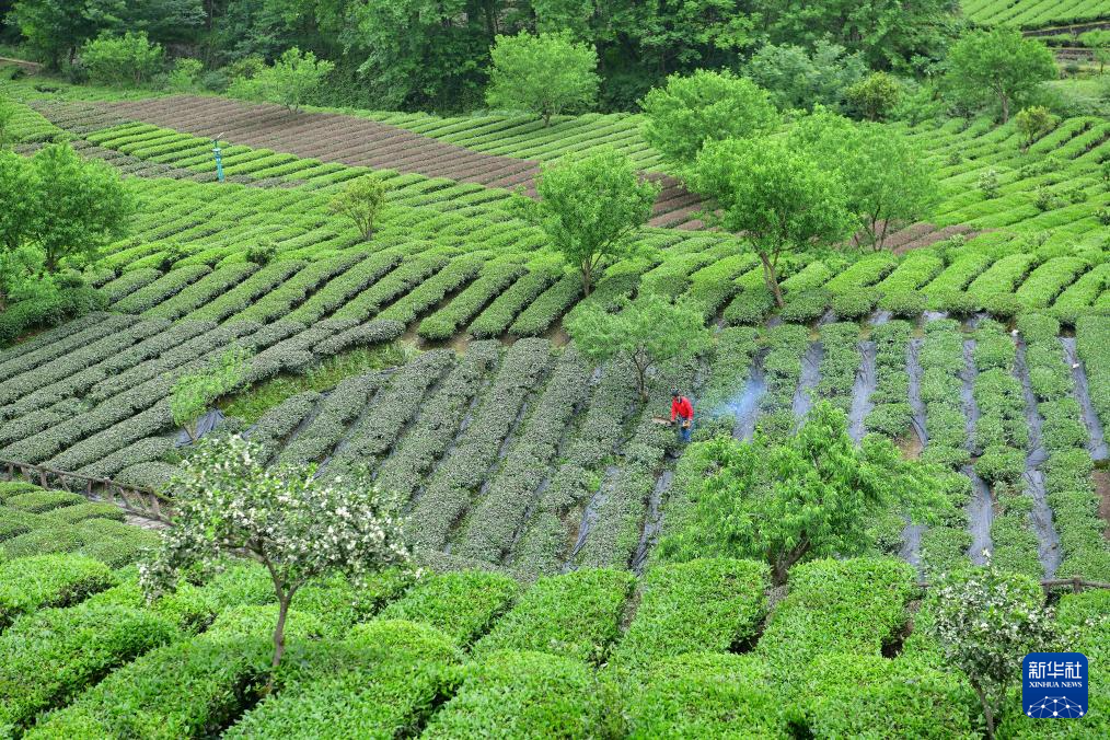 4月20日,茶农在湖北省宜昌市秭归县茅坪镇松树坳村一有机茶园里劳作。