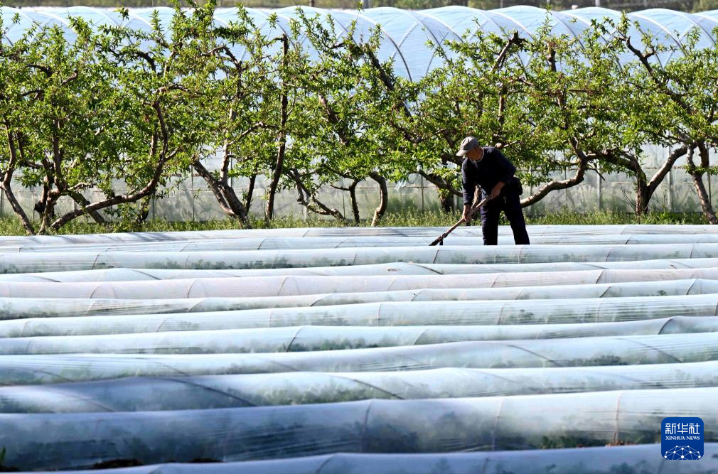 4月20日,农民在河北省石家庄市新华区杜北街道后杜北村西瓜园进行田间管理。