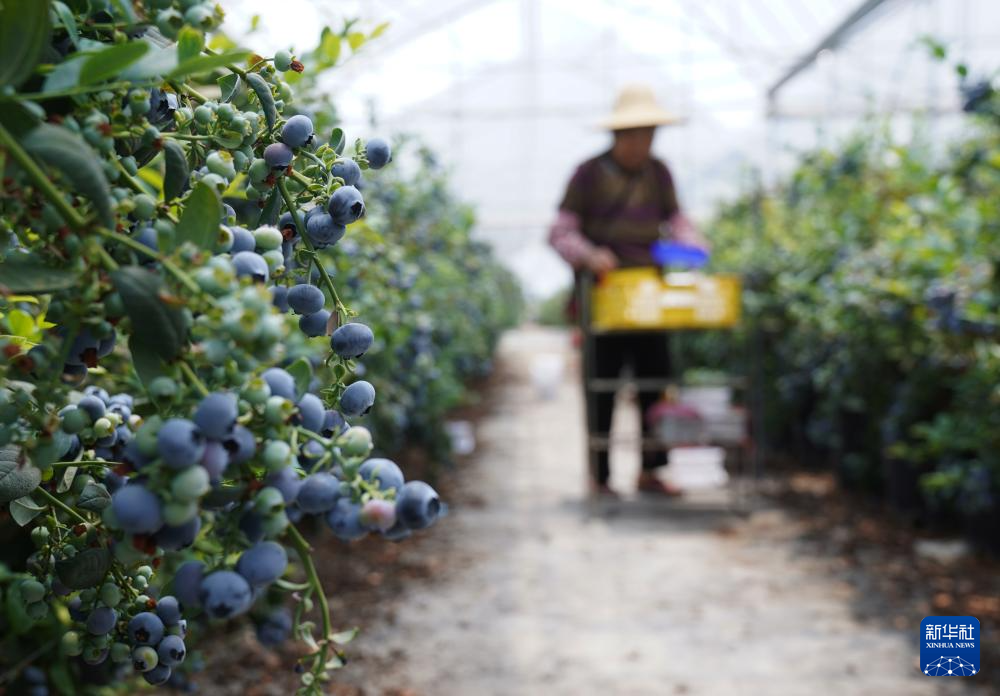 4月20日,村民在云南省澄江市一处蓝莓种植基地采摘蓝莓。