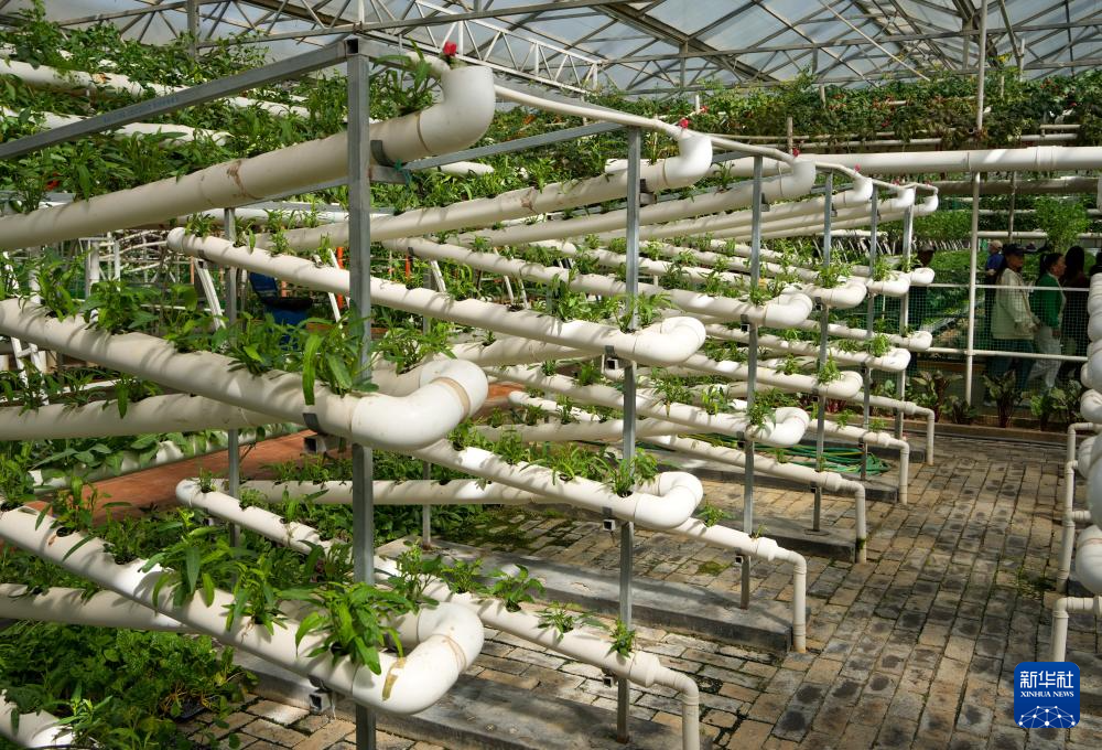 这是4月20日在蔬菜科技博览会上拍摄的新型种植模式展示。