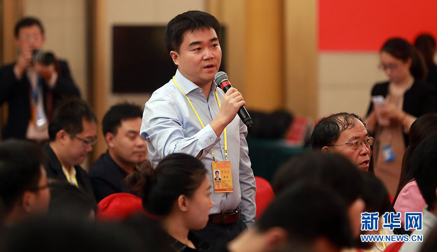 ??? 10月19日,十九大新聞中心舉辦集體采訪,邀請工信和通訊領(lǐng)域代表談走新型工業(yè)化道路。圖為中國國際廣播電臺記者提問。新華網(wǎng) 郝廣鵬攝