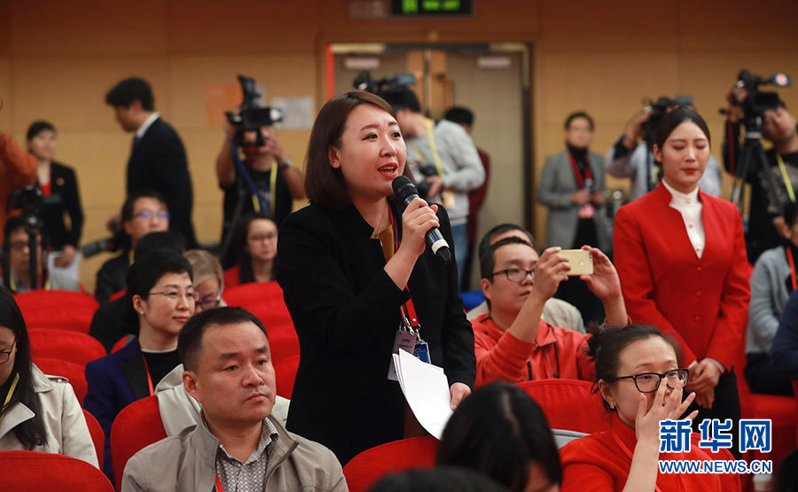 ??? 10月20日,十九大新聞中心舉辦集體采訪活動,主題為“文化發(fā)展開創(chuàng)新局面”。圖為中國國際廣播電臺記者提問。新華網(wǎng) 陳杰攝