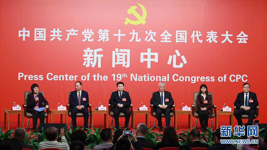 10月20日,十九大新聞中心舉辦集體采訪活動(dòng),主題為“實(shí)施創(chuàng)新驅(qū)動(dòng)發(fā)展戰(zhàn)略”。圖為集體采訪現(xiàn)場(chǎng)。新華網(wǎng) 郝廣鵬攝