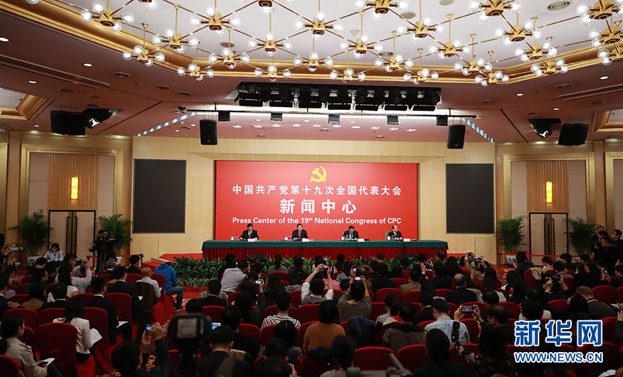 ??? 10月21日,十九大新聞中心舉辦記者招待會,邀請國家發(fā)展改革委黨組書記、主任何立峰,副主任張勇,副主任寧吉喆介紹以新發(fā)展理念為引領,推進中國經(jīng)濟平穩(wěn)健康可持續(xù)發(fā)展有關情況,并回答記者提問。圖為記者招待會現(xiàn)場。新華網(wǎng) 郝廣鵬攝