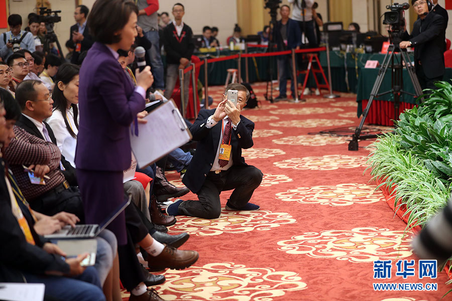??? 10月21日,十九大新聞中心舉辦記者招待會(huì),邀請(qǐng)國家發(fā)展改革委黨組書記、主任何立峰,副主任張勇,副主任寧吉喆介紹以新發(fā)展理念為引領(lǐng),推進(jìn)中國經(jīng)濟(jì)平穩(wěn)健康可持續(xù)發(fā)展有關(guān)情況,并回答記者提問。圖為現(xiàn)場(chǎng)記者。新華網(wǎng) 郝廣鵬攝