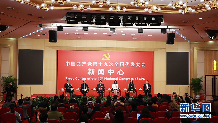 10月21日,十九大新聞中心舉辦集體采訪活動,主題為“農(nóng)業(yè)科技創(chuàng)新”。圖為集體采訪活動現(xiàn)場。新華網(wǎng) 郝廣鵬攝