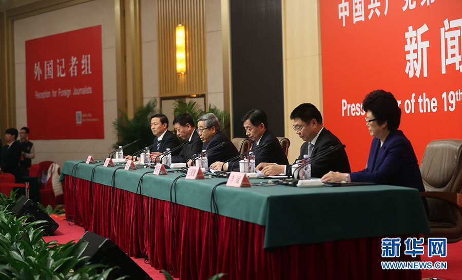 10月22日,十九大新聞中心舉辦記者招待會,邀請教育部黨組書記、部長陳寶生,民政部黨組書記、部長黃樹賢,人力資源社會保障部黨組書記、部長尹蔚民,住房城鄉(xiāng)建設(shè)部黨組書記、部長王蒙徽,國家衛(wèi)生計生委黨組書記、主任李斌介紹滿足人民新期待,保障改善民生有關(guān)情況,并回答記者提問。圖為記者招待會現(xiàn)場。新華網(wǎng) 郝廣鵬攝