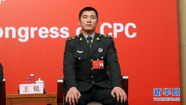 10月22日,十九大新聞中心在梅地亞中心二層新聞發(fā)布廳舉辦集體采訪活動(dòng),主題為“中國(guó)特色強(qiáng)軍之路邁出堅(jiān)定步伐”。圖為陸軍第74集團(tuán)軍某合成旅兩棲裝甲突擊車車長(zhǎng)王銳。新華網(wǎng) 郝廣鵬攝