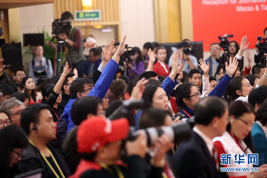 10月23日,十九大新聞中心舉辦記者招待會,邀請中央財經領導小組辦公室副主任楊偉民,環(huán)境保護部黨組書記、部長李干杰介紹踐行綠色發(fā)展理念,建設美麗中國有關情況,并回答記者提問。圖為現(xiàn)場記者。新華網(wǎng) 郝廣鵬攝