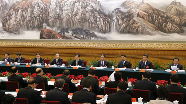 ??? 11月10日,中國共產(chǎn)黨第十八次全國代表大會(huì)主席團(tuán)在北京人民大會(huì)堂舉行第二次會(huì)議。胡錦濤、吳邦國、溫家寶、賈慶林、李長春、習(xí)近平、李克強(qiáng)、賀國強(qiáng)、周永康等出席會(huì)議。新華社記者鞠鵬攝
