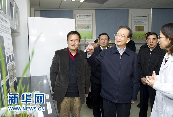 ??? 12月13日,國(guó)務(wù)院總理溫家寶到北京中關(guān)村考察并與部分企業(yè)負(fù)責(zé)人座談。這是溫家寶在未名凱拓農(nóng)業(yè)生物技術(shù)有限公司考察。 新華社記者黃敬文 攝