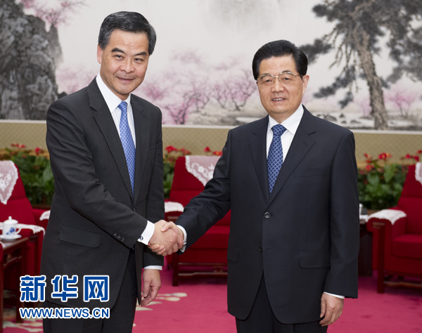 新華網(wǎng)北京12月21日電(記者李寒芳)國(guó)家主席胡錦濤21日下午在中南海會(huì)見(jiàn)了來(lái)京述職的香港特別行政區(qū)行政長(zhǎng)官梁振英,聽(tīng)取了他對(duì)香港當(dāng)前形勢(shì)和特區(qū)政府工作情況的匯報(bào)。