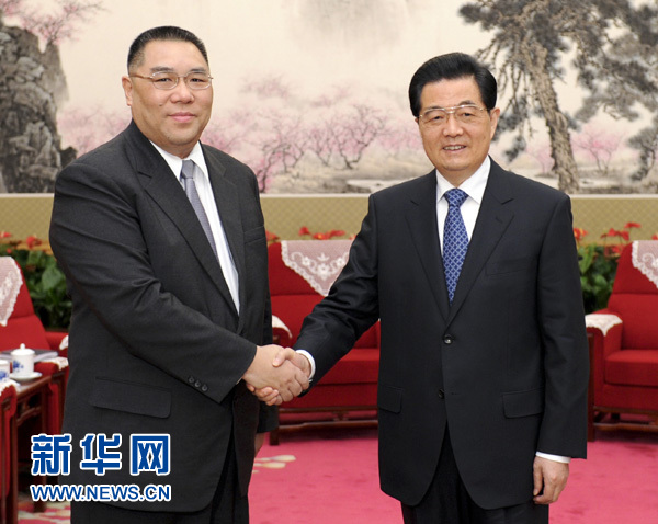 ??? 12月21日,國家主席胡錦濤在北京中南海會見來京述職的澳門特別行政區(qū)行政長官崔世安。新華社記者 張鐸 攝