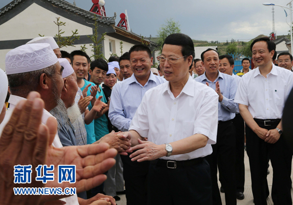 ??? 7月2日至5日,中共中央政治局常委、國務院副總理張高麗赴寧夏、甘肅調(diào)研。這是7月2日,張高麗來到寧夏固原市的一處移民新村,看望少數(shù)民族群眾,了解搬遷移民生活狀況。 新華社記者劉衛(wèi)兵攝