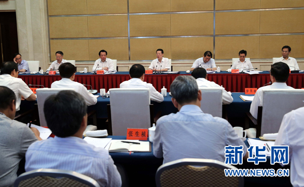 ??? 這是7月4日,張高麗在蘭州主持召開陜西、甘肅、青海、寧夏、新疆五省區(qū)政府負責同志參加的座談會。 新華社記者劉衛(wèi)兵攝