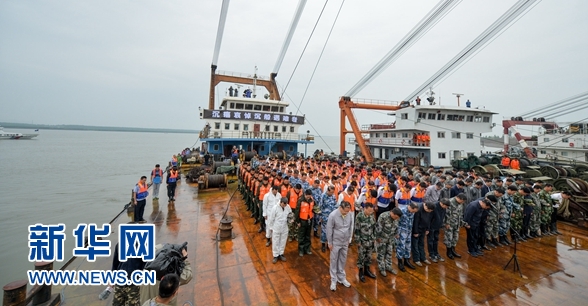 哀悼遇難者活動持續(xù)了三分鐘,隨后,救援人員繼續(xù)投入工作,盡全力搜尋遇難者。目前,“東方之星”遇難者人數(shù)已升至431人,有14人生還,仍有11人下落不明,遇難者善后工作正在進(jìn)行。