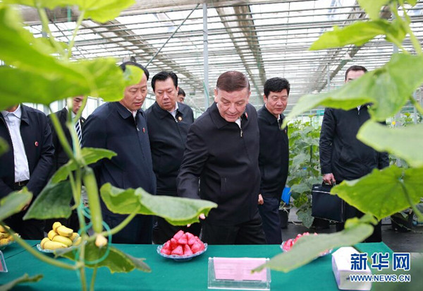 ????9月28日,全國人大常委會副委員長、中央代表團(tuán)副團(tuán)長艾力更·依明巴海率中央代表團(tuán)三分團(tuán)在昌吉回族自治州、烏魯木齊市看望慰問當(dāng)?shù)馗髯甯刹咳罕?。這是艾力更·依明巴海在昌吉國家農(nóng)業(yè)科技園區(qū)新疆農(nóng)業(yè)博覽園考察。新華社記者丁海濤攝