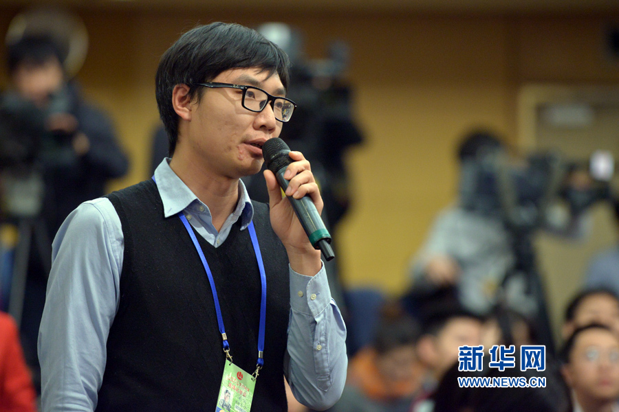 全國政協(xié)十二屆三次會議舉行記者會,邀請全國政協(xié)常委朱維群、黃潔夫和全國政協(xié)委員胡曉義、李彥宏、俞敏洪等談促進民生改善與社會和諧穩(wěn)定,并回答記者提問。圖為香港大公報記者提問。新華網(wǎng)/中國政府網(wǎng) 郭小天 攝