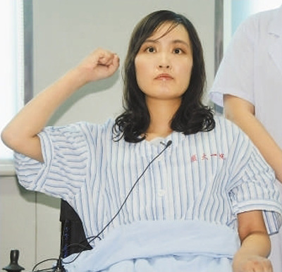 2012年7月1日,張麗莉在家人陪伴下,坐在輪椅上,舉起右拳,面對(duì)黨旗,莊嚴(yán)宣誓入黨。
