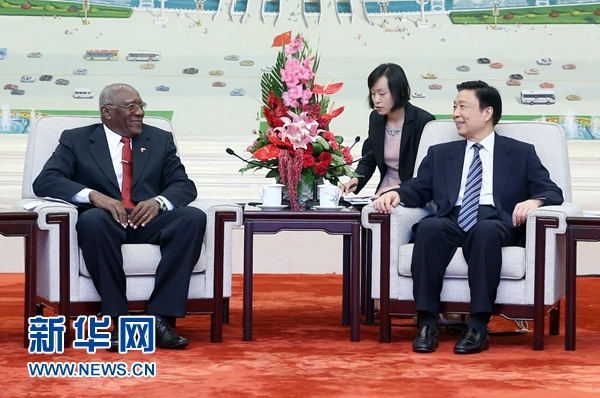 6月27日,中共中央政治局委員、國(guó)家副主席李源潮在北京會(huì)見(jiàn)來(lái)華通報(bào)古共七大情況的古共中央第一書(shū)記勞爾·卡斯特羅特使巴爾德斯。 新華社記者 姚大偉 攝