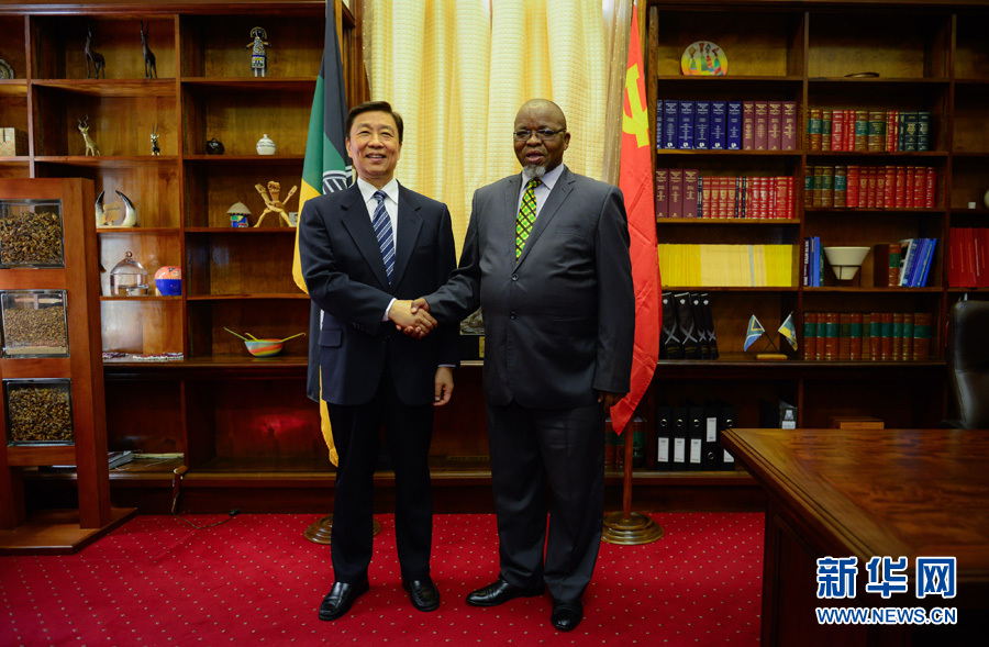 ??? 11月22日,中共中央政治局委員、國家副主席李源潮(左)在南非開普敦會(huì)見南非非洲人國民大會(huì)(非國大)總書記曼塔謝。 新華社記者翟健嵐攝