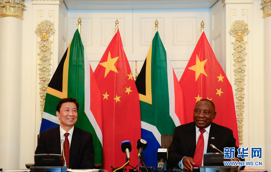 ??? 11月22日,正在南非訪問的中華人民共和國副主席李源潮同南非共和國副總統(tǒng)拉馬福薩在開普敦共同主持召開中國南非國家雙邊委員會第六次全體會議并致辭。新華社記者翟健嵐攝