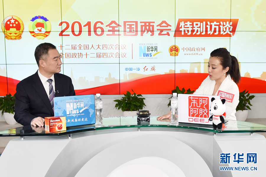 3月12日,全國人大代表,運城市市長王清憲做客新華網2016全國兩會特別訪談,與新華網網友在線交流。圖為王清憲在訪談現場。新華網 付宇鵬 攝