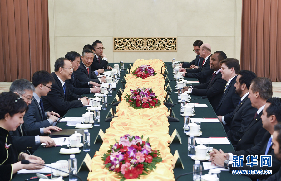 3月22日,中共中央書記處書記、全國政協(xié)副主席杜青林在北京會見巴西民主運動黨眾議院黨團領袖羅西率領的該黨干部考察團。 新華社記者張領攝