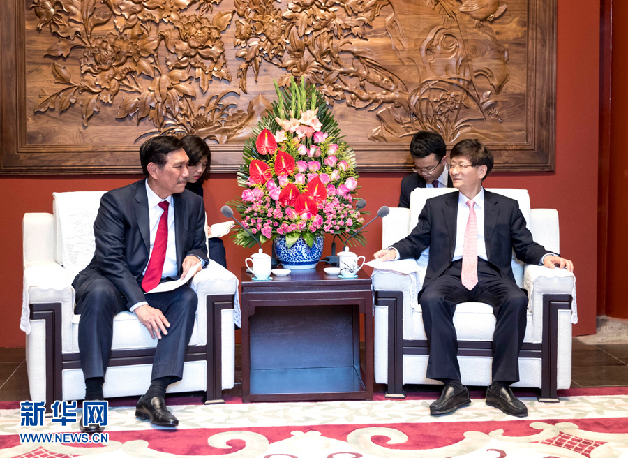 6月15日,中共中央政治局委員、中央政法委書記孟建柱在北京會見印尼總統(tǒng)特使、海洋統(tǒng)籌部長盧胡特。 ? 新華社記者 丁海濤攝