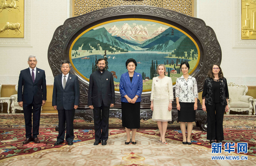 7月5日,國務(wù)院副總理劉延?xùn)|在北京人民大會堂會見第五屆金磚國家教育部長會議外方代表團(tuán)團(tuán)長。 新華社記者 李濤 攝
