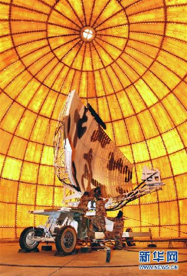 駐守藏北某雷達(dá)站擔(dān)負(fù)節(jié)日值班工作的官兵,精心檢查維護(hù)雷達(dá)天線,確保“千里眼”明亮(2011年1月30日攝)。新華社發(fā)(劉應(yīng)華 攝)