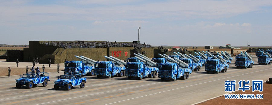 7月30日,慶祝中國(guó)人民解放軍建軍90周年閱兵在位于內(nèi)蒙古的朱日和訓(xùn)練基地舉行。中共中央總書記、國(guó)家主席、中央軍委主席習(xí)近平檢閱部隊(duì)并發(fā)表重要講話。這是海軍導(dǎo)彈第1方隊(duì)。新華社記者 查春明 攝
