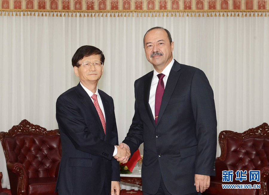 9月9日,中共中央政治局委員、中央政法委書記、中國(guó)和烏茲別克斯坦政府間合作委員會(huì)中方主席孟建柱(左)在塔什干會(huì)見烏總理、中烏政府間合作委員會(huì)烏方主席阿里波夫。 新華社記者沙達(dá)提攝