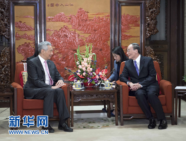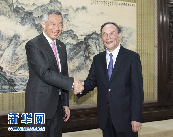 張德江、王岐山分別會(huì)見新加坡總理李顯龍