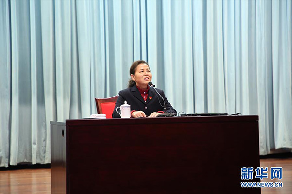 孫金娣組織“貫徹十九大,聽總書記話,永遠(yuǎn)跟黨走”黨員群眾大會,并進(jìn)行宣講(11月10日攝)。 新華社記者楊紹功攝
