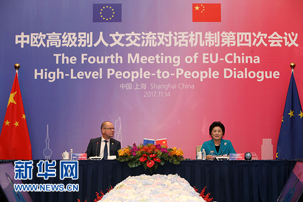 11月14日,國(guó)務(wù)院副總理劉延?xùn)|與歐盟委員會(huì)教育、文化、青年和體育委員瑙夫勞契奇作為機(jī)制雙方主席在上海共同主持中歐高級(jí)別人文交流對(duì)話機(jī)制第四次會(huì)議。新華社記者 劉穎 攝