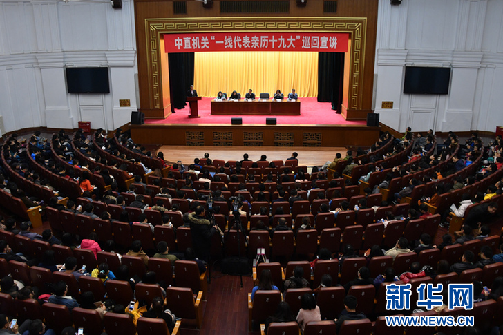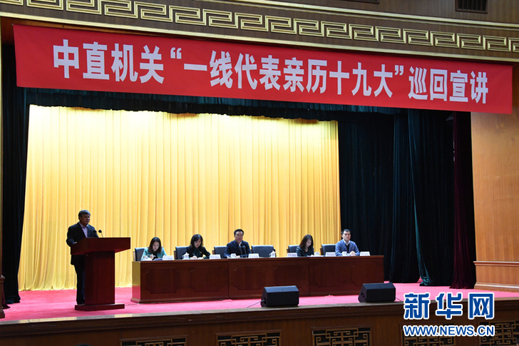 中直機(jī)關(guān)“一線代表親歷十九大”巡回宣講第三場(chǎng)報(bào)告會(huì)現(xiàn)場(chǎng)。新華社記者 徐速繪 攝