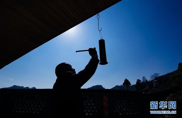 11月8日,湖南省花垣縣十八洞小學(xué)教師吳忠碧敲響上課鈴。 新華社記者 劉金海 攝