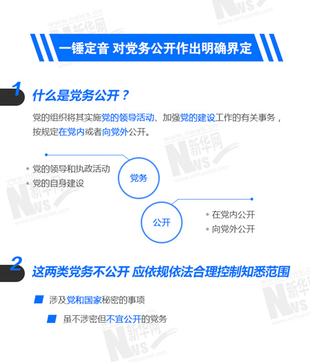 長(zhǎng)期以來(lái),關(guān)于什么是黨務(wù)公開(kāi),理論上和實(shí)踐中有一些不同觀點(diǎn)?!稐l例》對(duì)此作了明確界定,即黨務(wù)公開(kāi)是指黨的組織將其實(shí)施黨的領(lǐng)導(dǎo)活動(dòng)、加強(qiáng)黨的建設(shè)工作的有關(guān)事務(wù),按規(guī)定在黨內(nèi)或者向黨外公開(kāi)。而且《條例》還規(guī)定了除涉及黨和國(guó)家秘密不得公開(kāi)、依照有關(guān)規(guī)定不宜公開(kāi)的事項(xiàng)外,一般應(yīng)當(dāng)公開(kāi)。