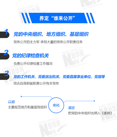 《條例》明確規(guī)定了公開(kāi)范圍,主要包括向社會(huì)公開(kāi),在全黨公開(kāi),在本地區(qū)、本部門(mén)、本單位公開(kāi),對(duì)特定黨的組織、黨員和群眾公開(kāi)。并規(guī)定了黨的組織應(yīng)當(dāng)根據(jù)《條例》規(guī)定的黨務(wù)公開(kāi)內(nèi)容和范圍,編制黨務(wù)公開(kāi)目錄,并根據(jù)職責(zé)任務(wù)要求動(dòng)態(tài)調(diào)整。