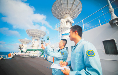 2017年,遠(yuǎn)望號船隊圓滿完成了包括天舟一號在內(nèi)的11次海上測控任務(wù),累計海上作業(yè)519天,安全航行13.5萬余海里,相當(dāng)于繞地球赤道6圈多。在萬里大洋之上,遠(yuǎn)望號船隊用無線電波搭接一條條“天梯”為飛船、衛(wèi)星成功飛天保駕護(hù)航。