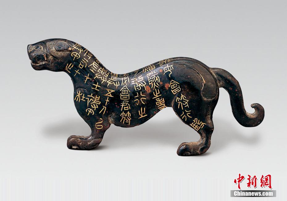 12月29日,全國30家文博機構(gòu)聯(lián)合打造的“東方既白——春秋文物大聯(lián)展”在湖南省博物館對公眾開放,包括在央視《國家寶藏》中亮相的杜虎兵符,吳王夫差銅矛等在內(nèi)的240件/套文物珍品,帶領(lǐng)觀眾重回“春秋戰(zhàn)國”。圖為杜虎兵符(左符)。 湖南省博物館供圖