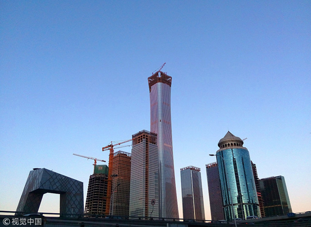 ??2017年12月20日,藍(lán)天下的北京CBD中心區(qū)。