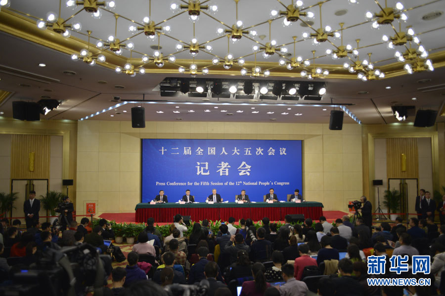 3月10日,十二屆全國(guó)人大五次會(huì)議新聞中心舉行記者會(huì),邀請(qǐng)中國(guó)人民銀行行長(zhǎng)周小川、副行長(zhǎng)易綱、副行長(zhǎng)兼國(guó)家外匯管理局局長(zhǎng)潘功勝、副行長(zhǎng)范一飛就“金融改革與發(fā)展”的相關(guān)問題回答中外記者的提問。圖為記者會(huì)現(xiàn)場(chǎng)。新華網(wǎng)/中國(guó)政府網(wǎng) 孫韜 攝