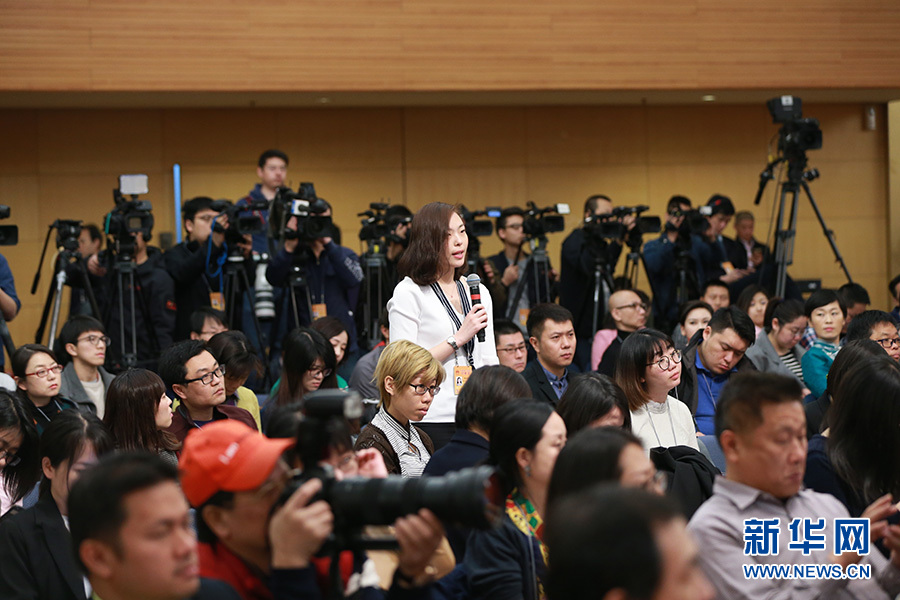 3月11日,十二屆全國(guó)人大五次會(huì)議新聞中心舉行記者會(huì),邀請(qǐng)工業(yè)和信息化部部長(zhǎng)苗圩、副部長(zhǎng)辛國(guó)斌和總工程師、新聞發(fā)言人張峰就“推進(jìn)實(shí)施‘中國(guó)制造2025’”的相關(guān)問題回答中外記者的提問。圖為中國(guó)網(wǎng)記者提問。新華網(wǎng)/中國(guó)政府網(wǎng) 傅義洲 攝